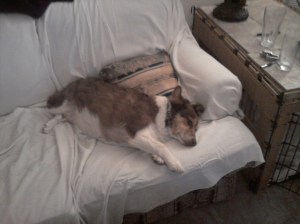 The man and his dog retreated, I apologized, and Chloe calmed down and reverted to her attention-seeking normal self. Since then, I’ve figured out that she only likes dogs she can dominate. To wit, her “friends” are a miniature dachshund, a Jack Russel Terrier slightly smaller than herself, and a… dog named Hot Dog that seems to be oblivious to most things around it.